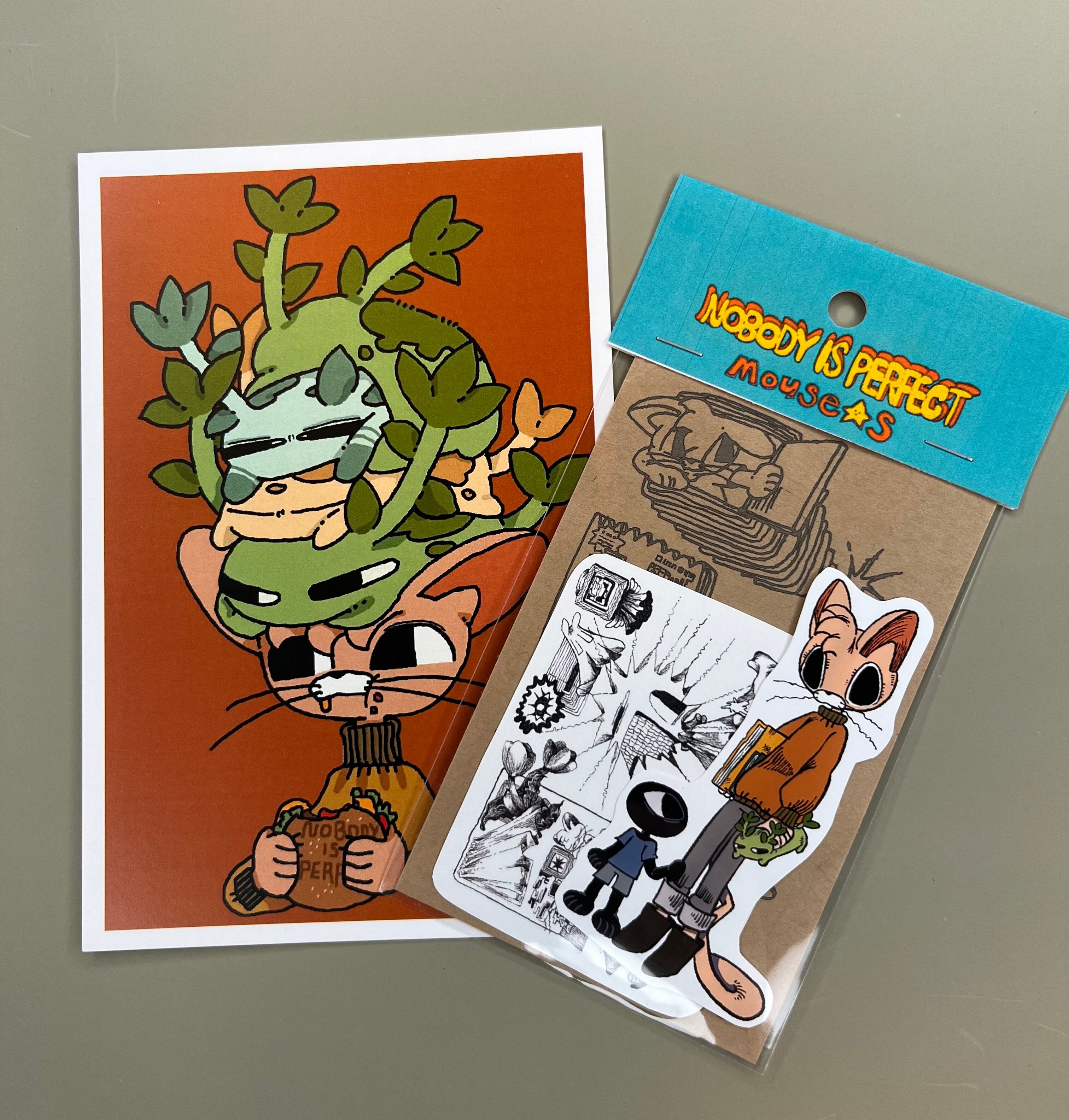ポストカードとシールセット(マウス&うに)